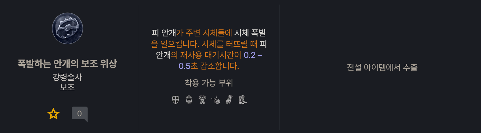 -시체 폭발을 '마름병 걸린~' 패시브로 암흑 지속피해 기술로 전환하고,
