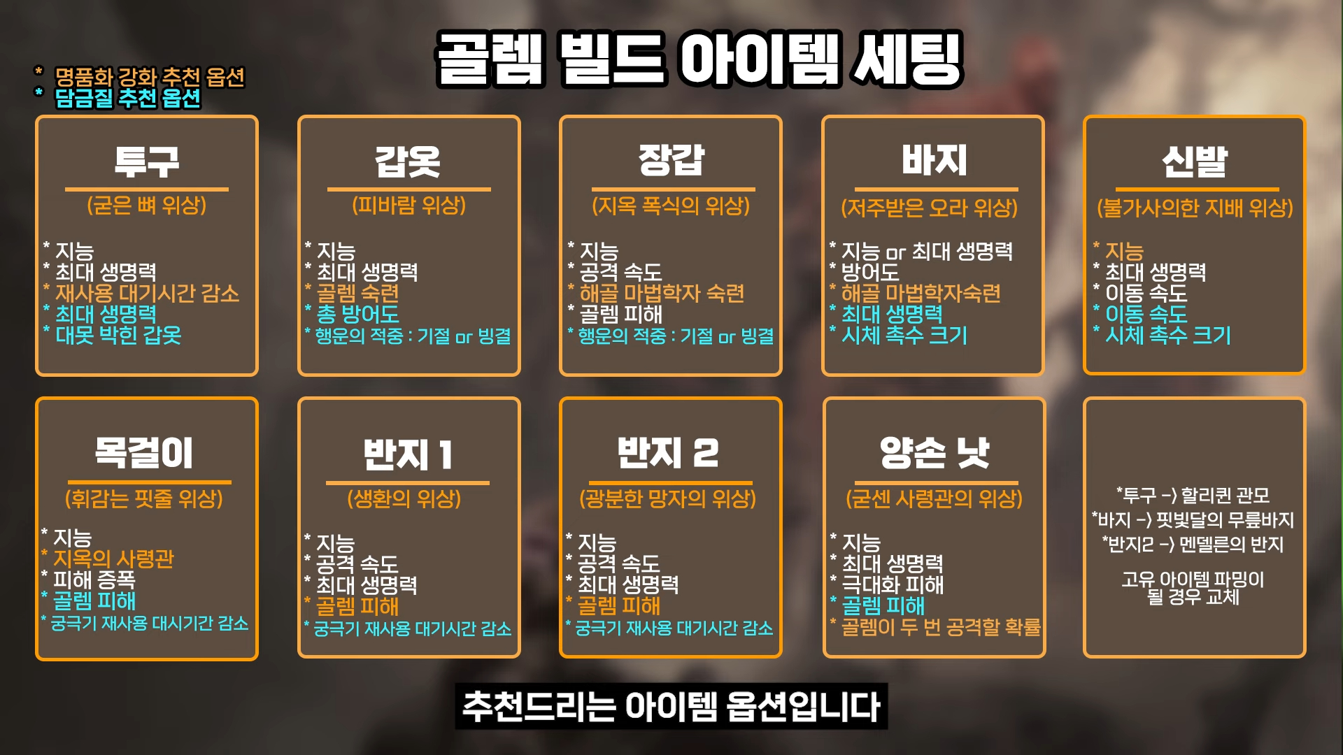 ◦ 소환 빌드를 유지하고자 할 시: 골렘 빌드 추천